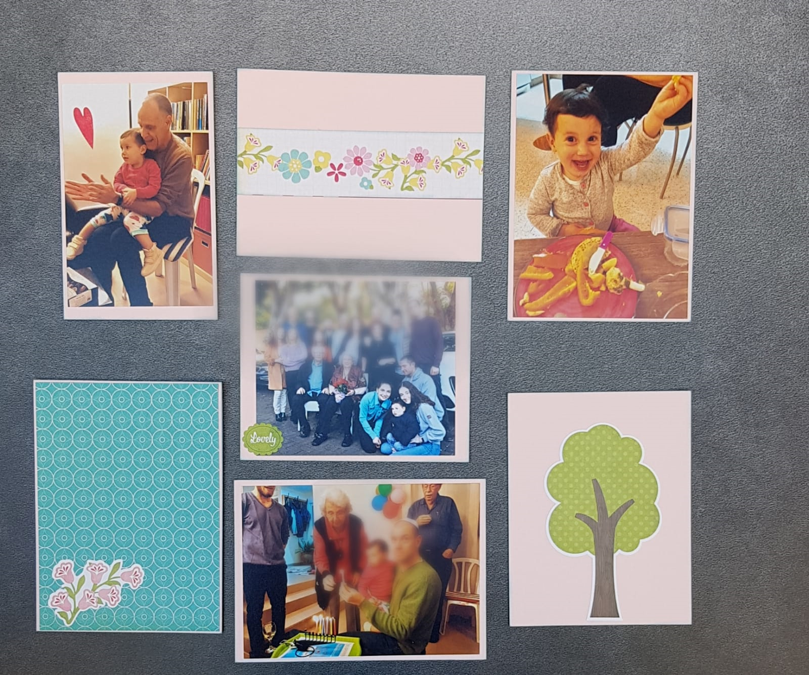 היה חשוב לי להכניס לתוכה את הגוונים של ורוד (כמובן :)), וגם תמונות שלה ממהלך השנה שעברה, תמונות שלה עם המשפחה,