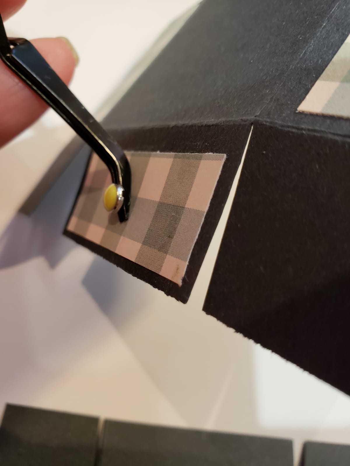 נדביק את הנייר המדוגם בהתאם, תוך השארת מאטינג דק בכל ארבעת הצדדי של הכיס