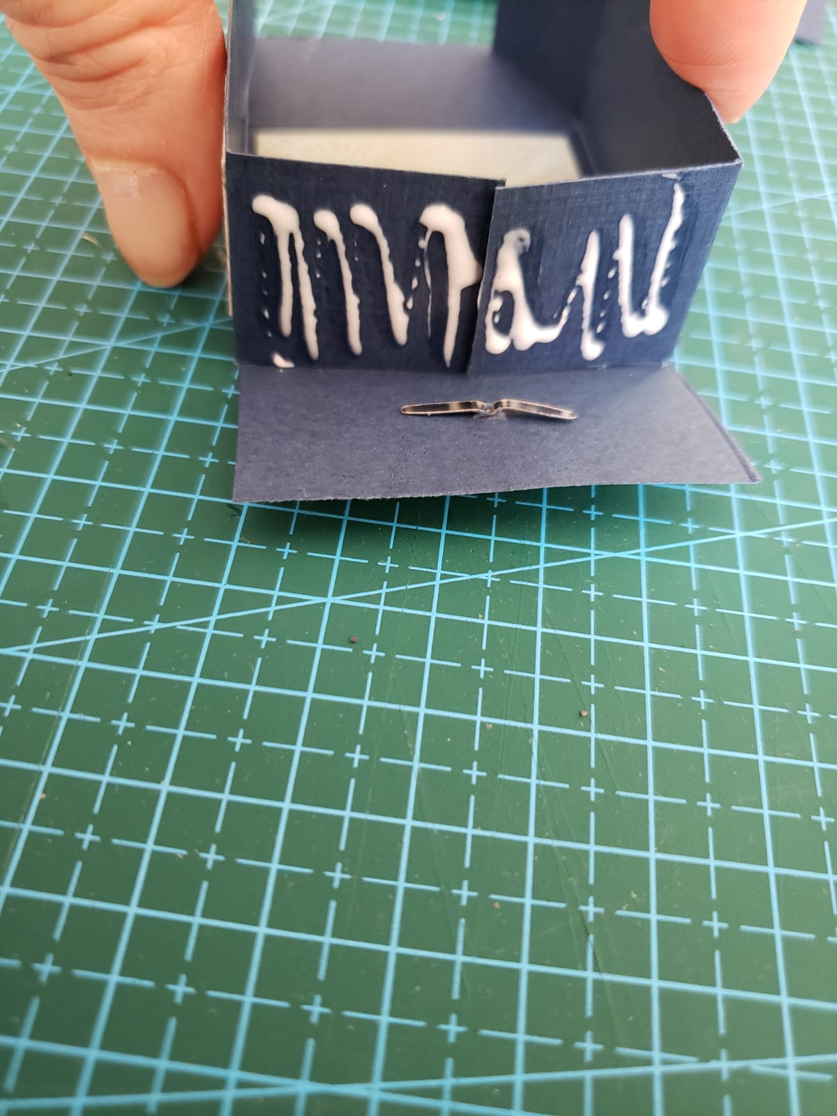 18.  נמרח דבק נוזלי (והרבה) על ארבעת הקופסאות שמחוברות כבסיס.