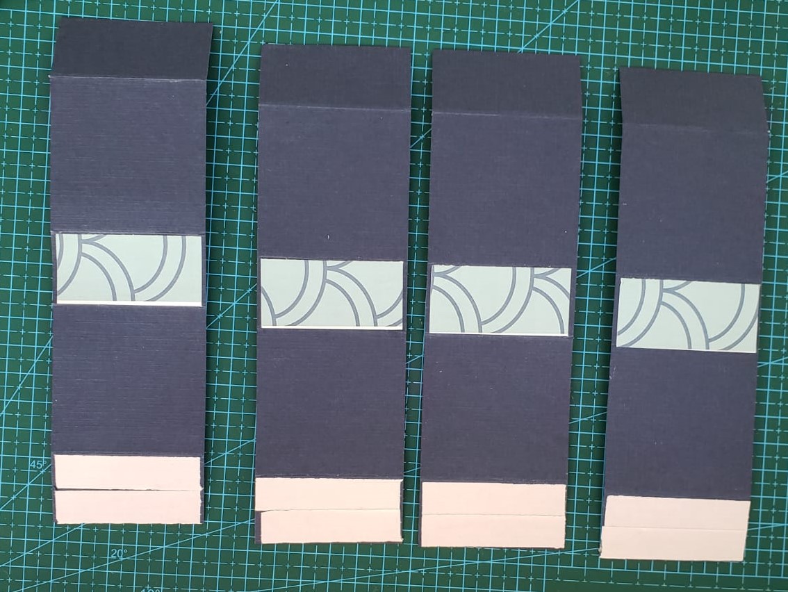 • לעטיפת המגירות – 4  יחידות של קארדסטוק בסיס בגודל  ⅛2 על ¼7 אינץ' – נחרוץ כל יחידה ב: 1,⅛3, ⅛4 , ¼6