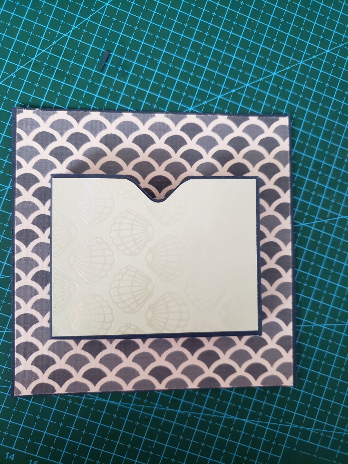 20.ניקח את קארדסטוק הבסיס בגודל ¾4  על ¾4 אינץ', ונדביק עליה את המדוגם בגודל ⅝4 על ⅝4 אינץ'.