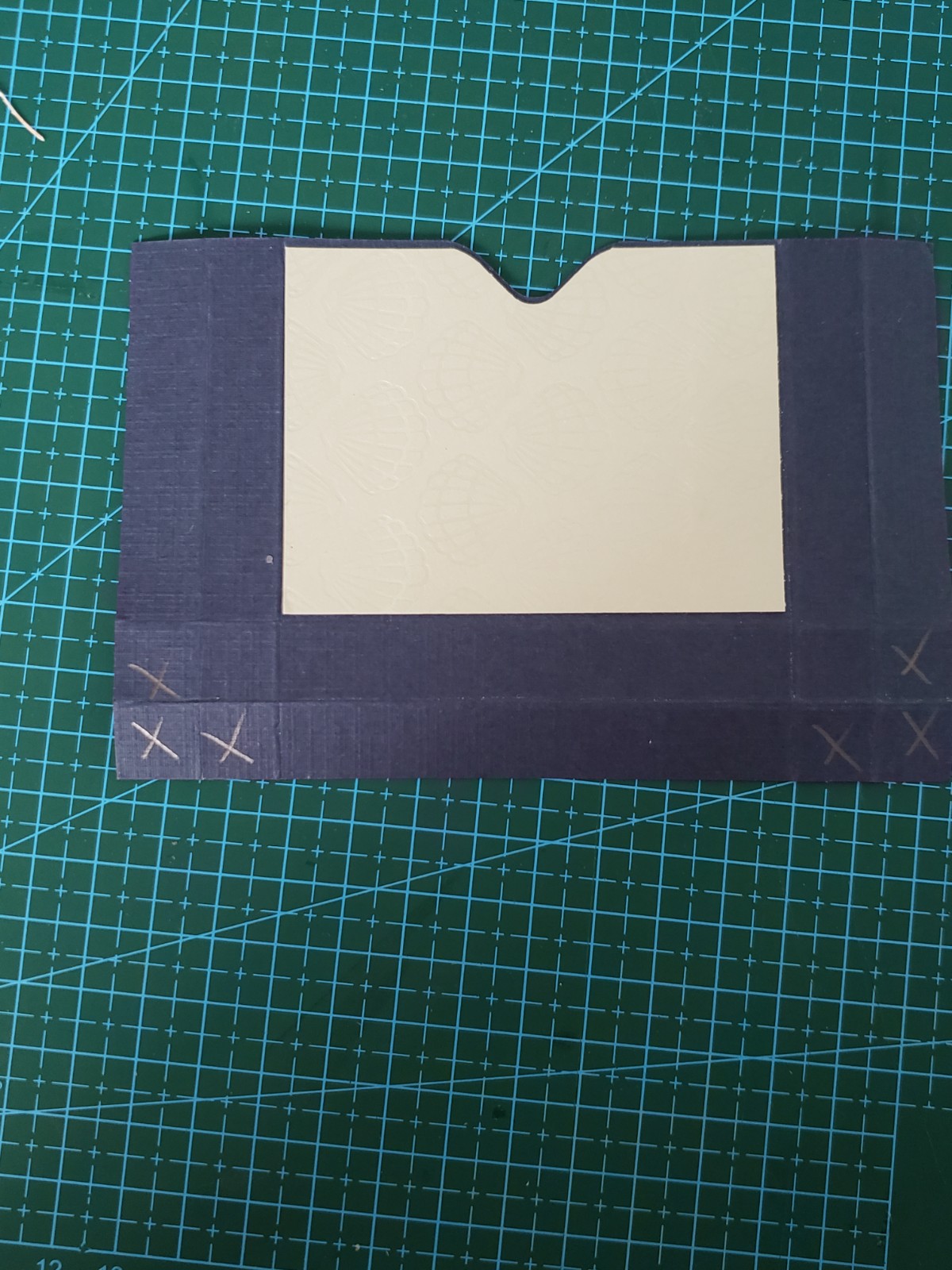 21.  ניקח את קארדסטוק הבסיס בגודל ¼5 על ½3 אינץ', נעבור על קווי החריצה, ונגזור שלושה מרובעים מכל צד, (מסומנים ב X) כלומר תשאר לנו לשונית שנעשה גם לה שניצים כדי שתתחבר בצורה יפה יותר.
