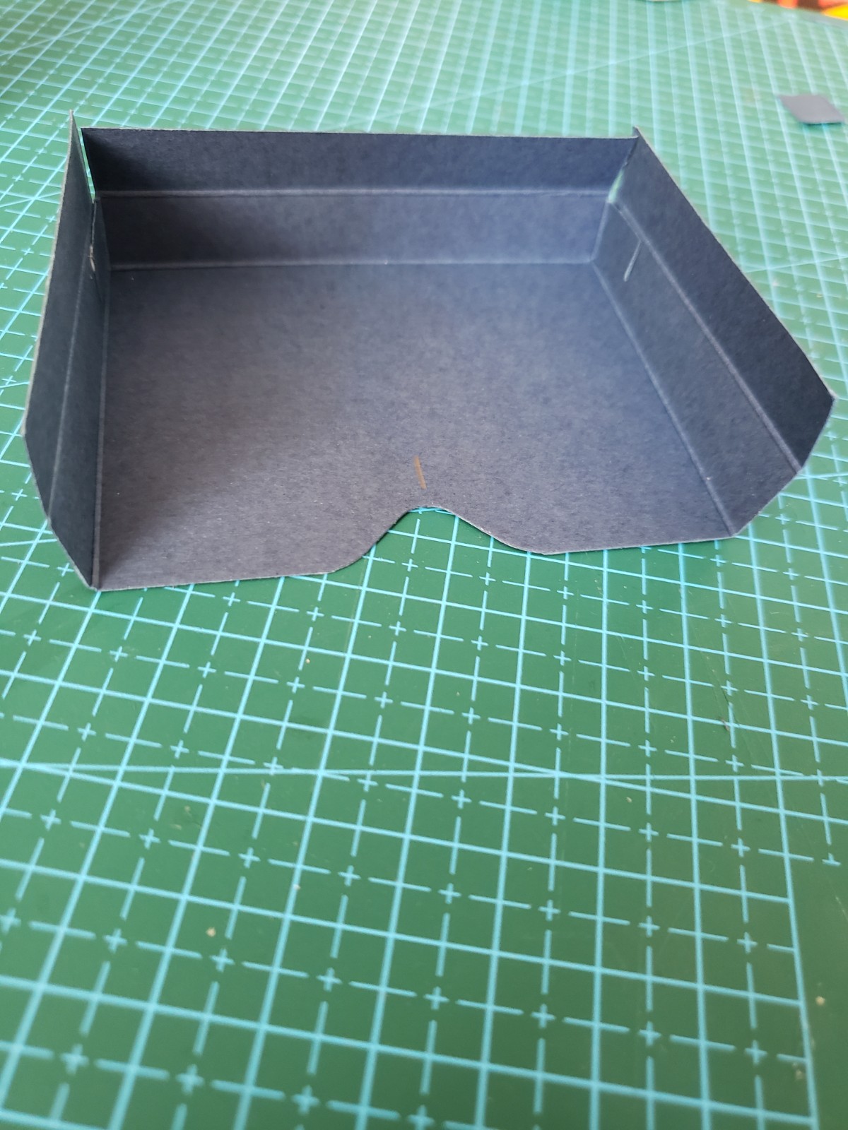 23.  נדביק את שתי הלשוניות לשני צידי הקופסית, נקפל את הלשונית התחתונה שנשארה, ואליה נדביק בשני הקצוות התחתונים את הלשוניות הצידיות.