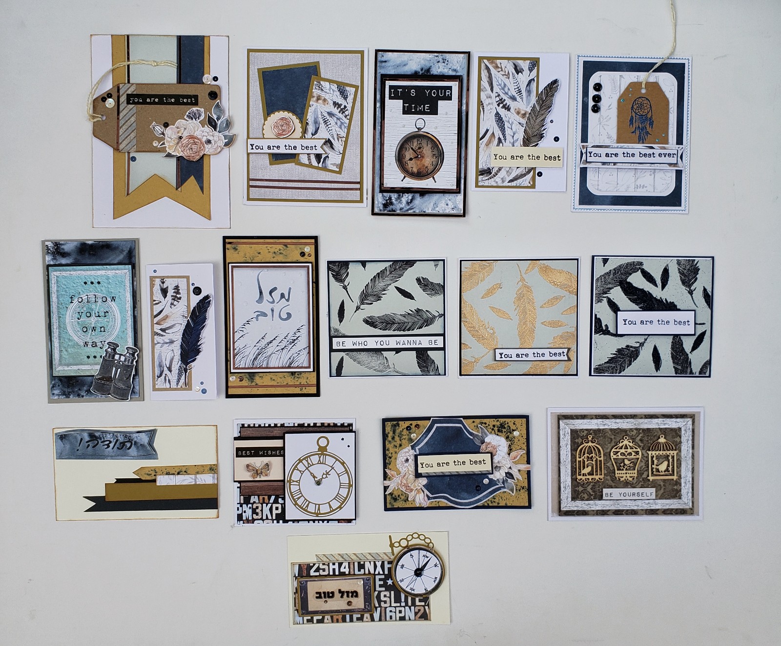 והנה תמונה קבוצתית של כל הכרטיסים שהכנתי עם הקיט. את חלקם אני אוהבת יותר ואת חלקם פחות.
