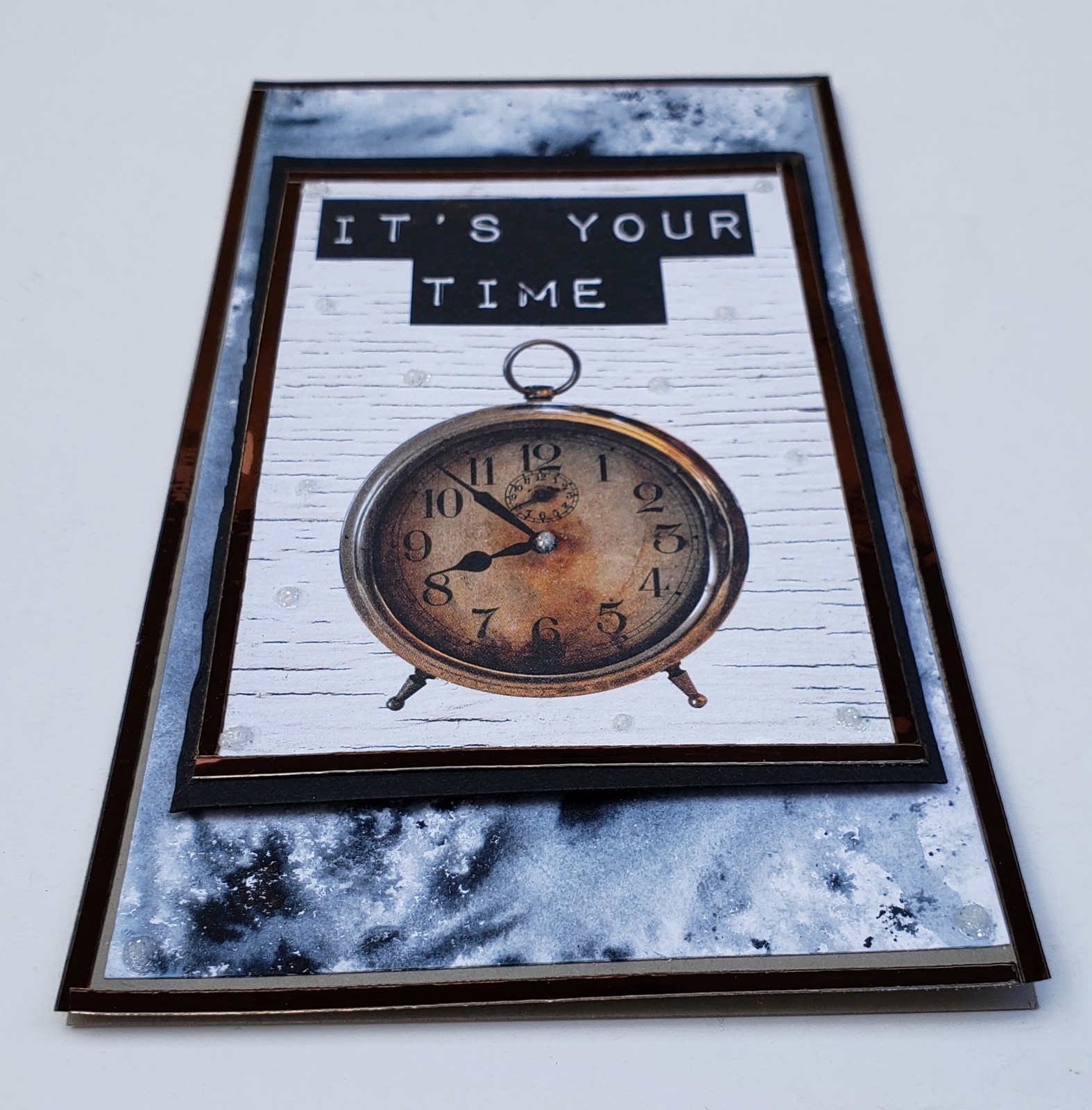 להוספת הנצנוץ שהתרגלתי אליו, הוספתי Stickles מנצנץ במרכז השעון.